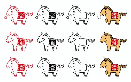 2026 年賀状用馬の挿絵セット
