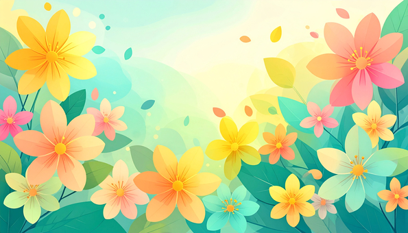 水彩で描かれたカラフルな花