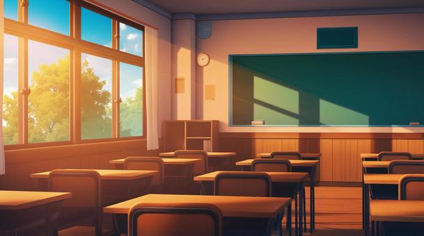 アニメ風 学校 教室 (晴れ・夕方)