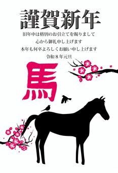 午年年賀状/親子(モノクロ/横)