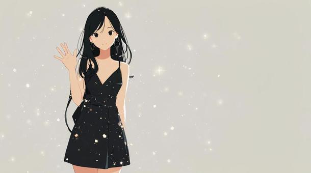 黒いドレスで手を振る女性
