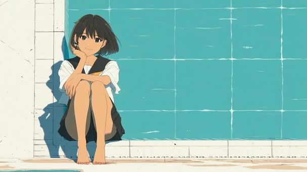 プールサイドに座る少女