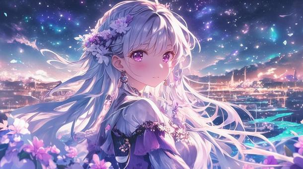 夜中の花畑の少女4