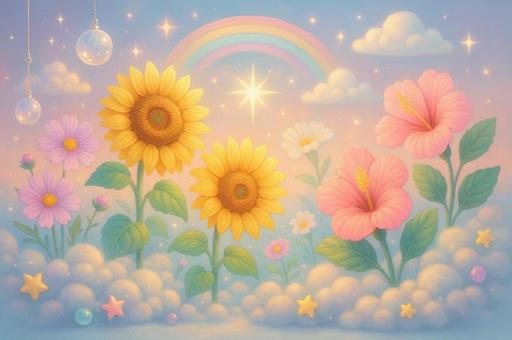 ラフなタッチで切り絵風の春の花々の背景
