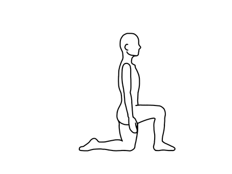 足首を地面に沿わせ膝立ちし片膝を立てる人