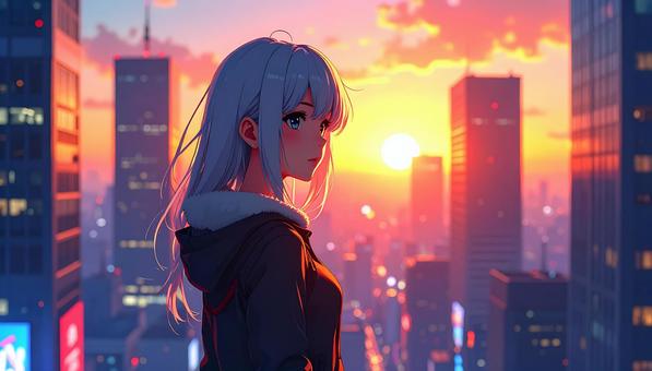 桃髪少女と都会の街並み3
