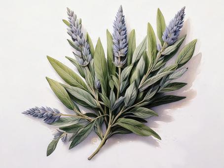 ハーブのセージの水彩風イラスト