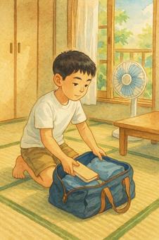 夏の朝の荷造り
