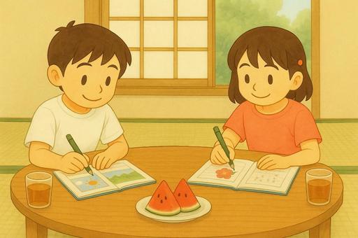 絵日記を描く子どもたち