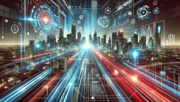 近未来の夜景と光のライン