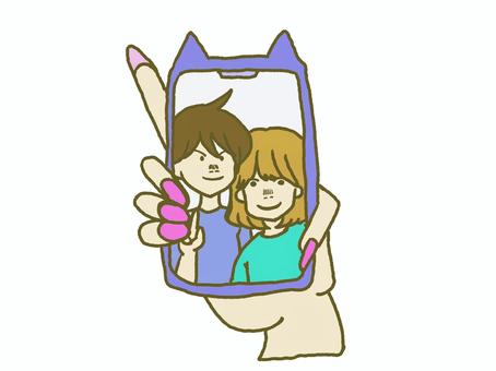 スマホの画面に映る男女