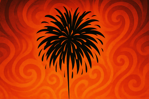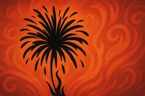 一瞬の輝きと炎の渦が融合した夕焼けの花火