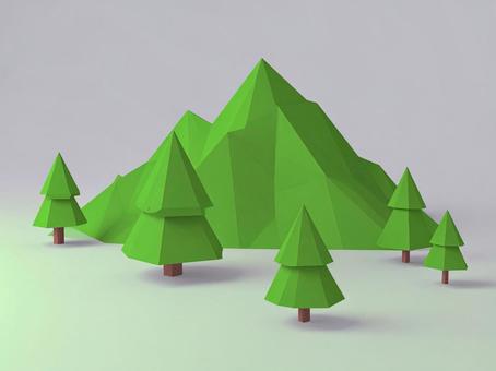 ゲーム風ポリゴンの樹木とベンチのイラスト