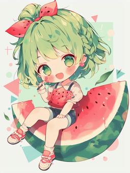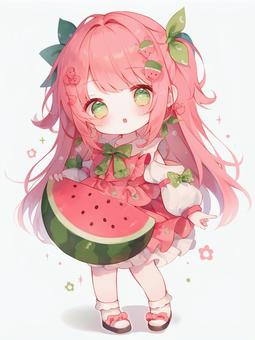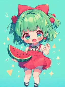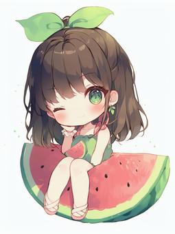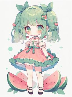 スイカモチーフの服装をした女の子