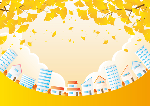 ポップな秋の紅葉と夕暮れの街の背景素材