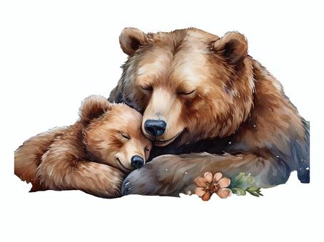 お昼寝するクマの親子