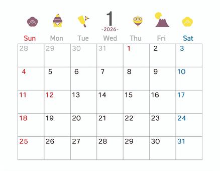 アイコン柄の2026年1月カレンダー 横
