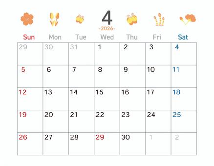 アイコン柄の2026年4月カレンダー 横