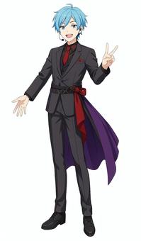 黒髪紫目の男性アイドル 全身 透過済