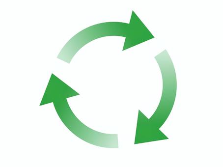 ぐるりと円を描く緑色矢印イラスト(上向)