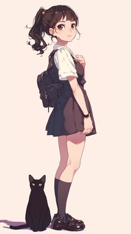ポニーテールの少女と黒猫