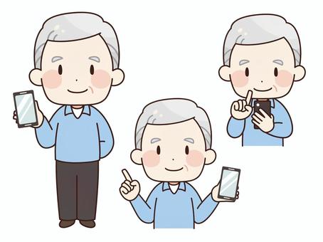 スマホを操作するおじいちゃん