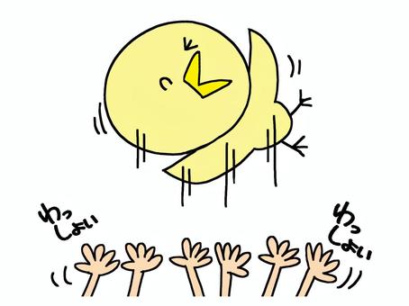 胴上げされるひよこ