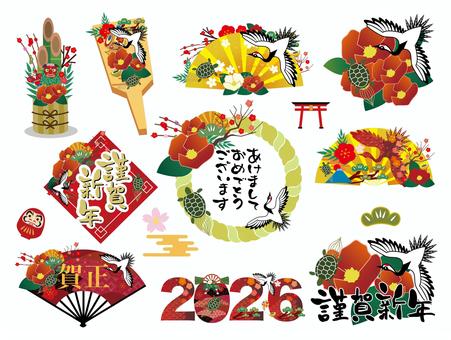 水彩風右上斜め結び注連縄龍のお年賀素材集