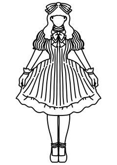 リボンのたくさんついたワンピース 線画