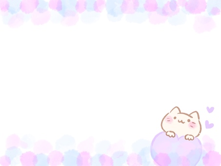包帯ハートを持つ猫と水彩フレーム(紫)