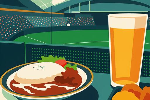 ドーム球場で楽しむビールとカレーライス