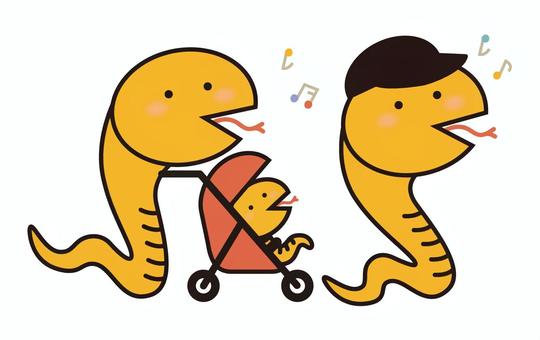 乳母車の赤ちゃんヘビを連れたヘビ_黄色