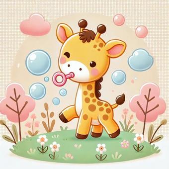 シャボン玉で遊ぶキリン