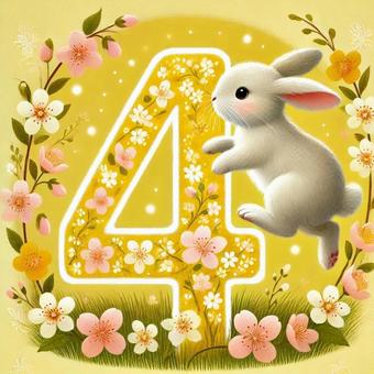 数字シリーズ 4 花咲く数字とうさぎ