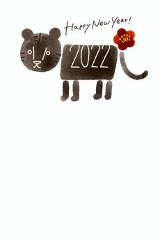 2022年_寅年年賀状・水彩タッチ虎と椿