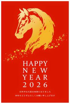 2025年賀状巳年 一筆書き蛇-赤金和柄