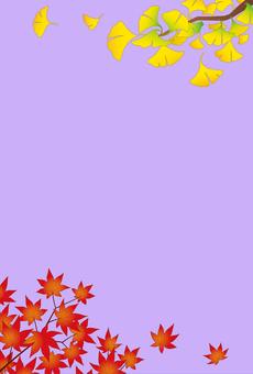 モミジとイチョウのフレーム 手描き