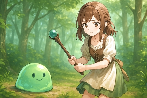 スライムと一生懸命戦う少女