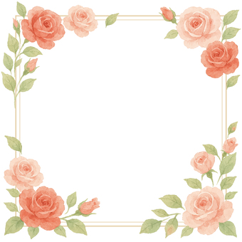 水彩風のバラのフレーム・花柄の装飾枠