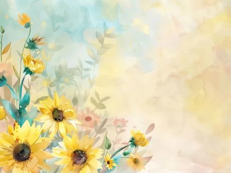 水彩風紅葉と音符のキラキラ背景ヨコ