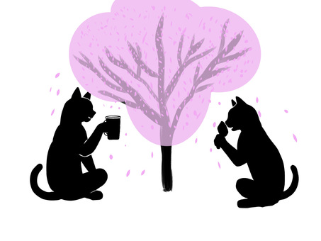 桜の下で酒盛りをする猫