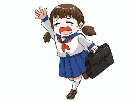 泣きながら手をあげて走る女生徒