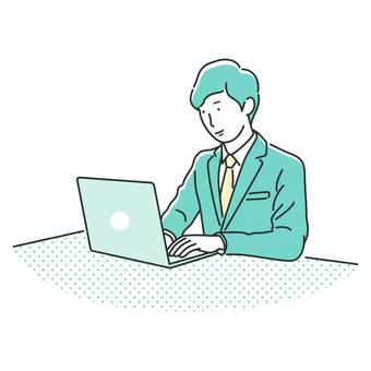 パソコンとスーツの男性