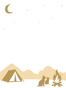 猫とキャンプのシルエット背景 縦・黄色